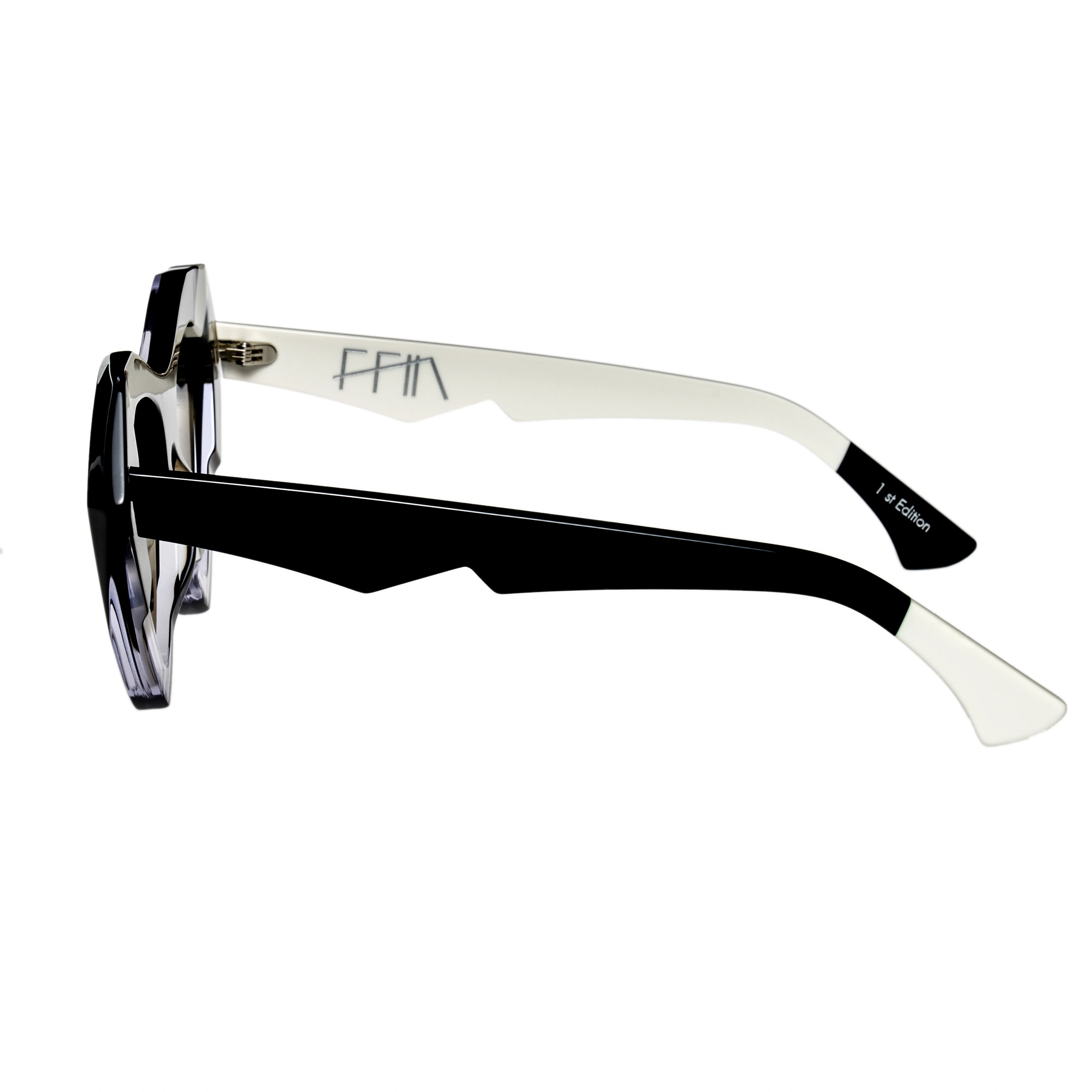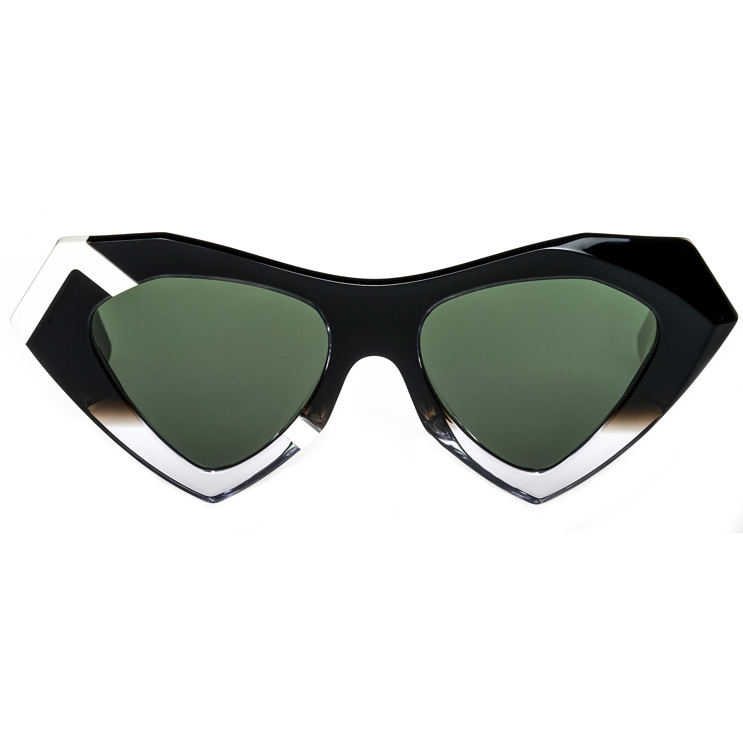 Featured at London Fashion Week. NOS is the Welsh word for night. This dramatic vintage cat eye has faceted jewel like details and fades from darkness to light, with lightening edge detail.